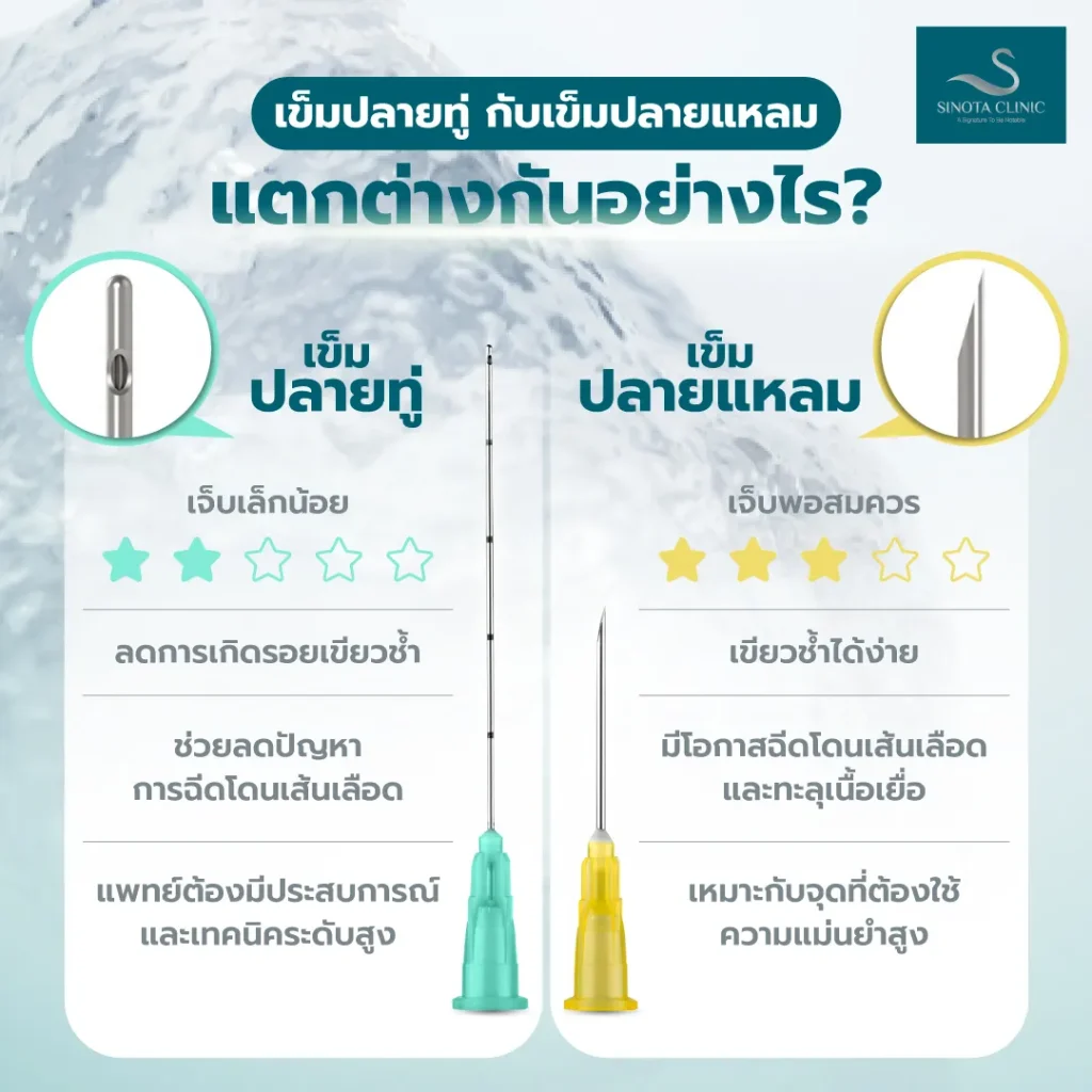 Feature a pointed tip capable of penetrating all tissue layers down to bone. Effective for areas with dense tissue. Higher risk of vascular penetration. Increased potential for intravascular injection, which may lead to tissue necrosis or visual complications