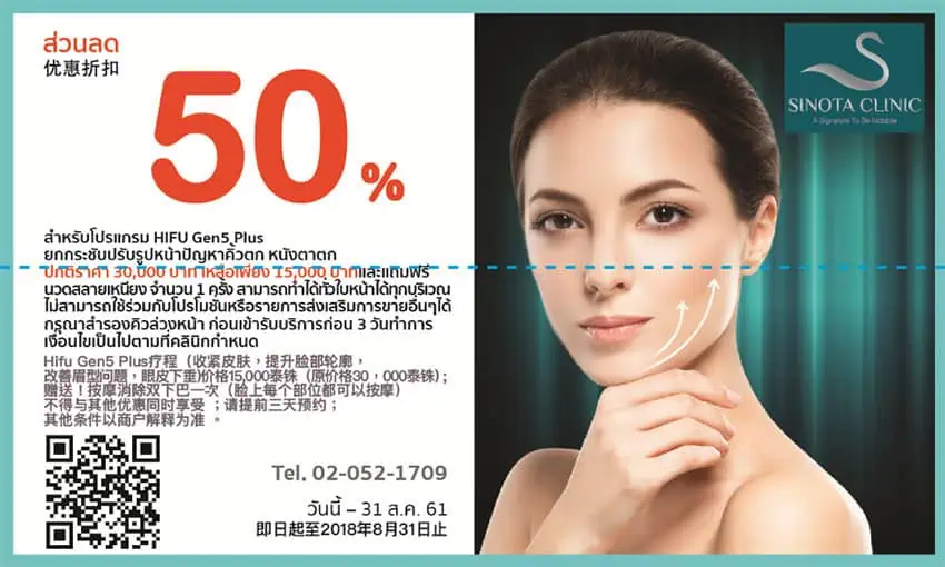 Special privilege, only for Bank of China card holders, receive a 50 % discount when receiving face lifting and shaping services. Hifu Gen 5 Plus at Sinota Clinic