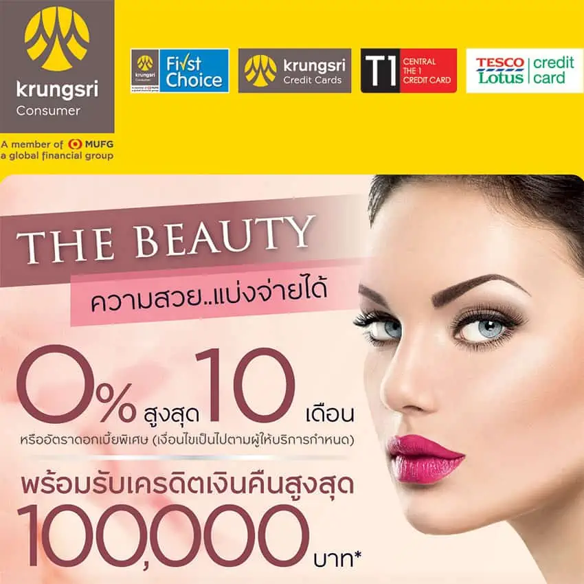 Good news for girls Sinota Clinic Together with Krungsri and affiliated credit cards, girls will be beautiful without worrying. THE BEAUTY Beauty can be paid in installments 0 % up to 10 months. Beautiful in installments with 2 special privileges.
