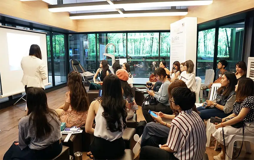 In addition, there was a lecture on the topic “SculpSure changes a broken body...to a great body” by the Product Specialist from Cynosure. Sculpsure is the first laser innovation. that can reach and destroy excess fat cells without surgery (non-invasive) using laser energy in the 1060 nm wavelength down to the fat layer, specifically targeting the fat cells only. and turns into heat energy at a temperature of 42-47ºC. This temperature range will help eliminate fat by causing the fat to go into shock and gradually die without harming other nearby cells. This destroyed fat cell It will be gradually absorbed from the body through the body's normal waste excretion channels.