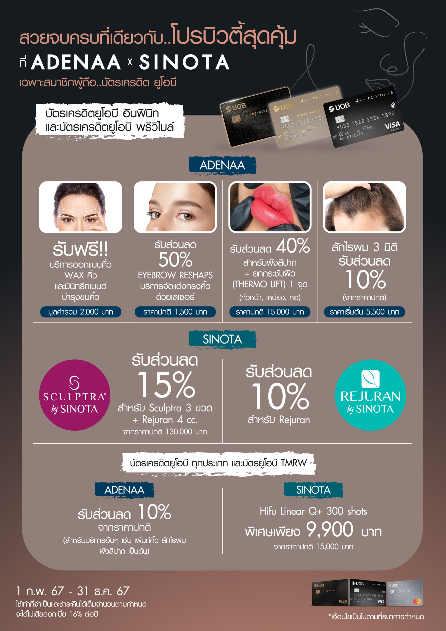 โปรบิวตี้สุดคุ้ม!! ADENAA x SINOTA มอบดีลส่วนลดเรตพิเศษชุดใหญ่ เฉพาะสมาชิกผู้ถือบัตรเครดิต ยูโอบี